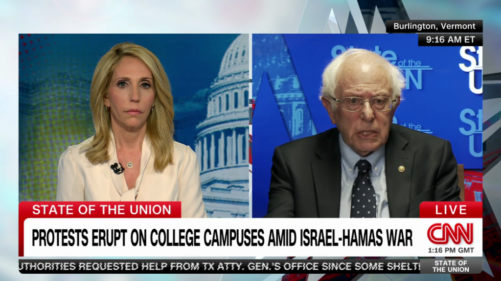 Independent Sen. Bernie Sanders tells CNN’s Dana Bash that antisemitic incidents at protests should be condemned but says “we do have to pay attention to the disastrous and unprecedented humanitarian disaster” in Gaza.Independent Sen. Bernie Sanders tells CNN’s Dana Bash that antisemitic incidents at protests should be condemned but says “we do have to pay attention to the disastrous and unprecedented humanitarian disaster” in Gaza.