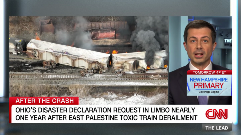 Secy. Buttigieg on stalled rail safety law after toxic crash