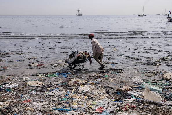 On Dakar’s long Hann Bay beach in Senegal, a lone figure with a shovel and wheelbarrow tirelessly picks up mounds of rubbish in such quantities that the task takes on an almost mythological air.