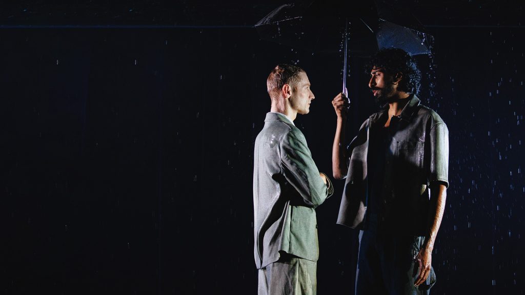 Canadian writer Jordan Tannahill’s “highly speculative royal romp” is set in 2032. It imagines 18-year-old Oxford student Prince George, nicknamed “Tips” (John McCrea), bringing home his Indian boyfriend Dev (Mihir Kumar) to meet the Prince and Princess of Wales (K. Todd Freeman and Rachel Crowl).
