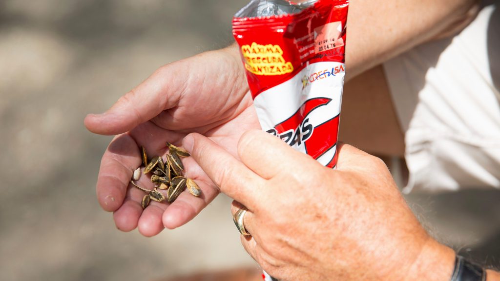 Eating pipas, which requires snackers to “deftly crack open the shells with their teeth and spit them out”, is “associated with conviviality” – as well as occupying the hands of “those of a nervioso, or anxious, disposition”.