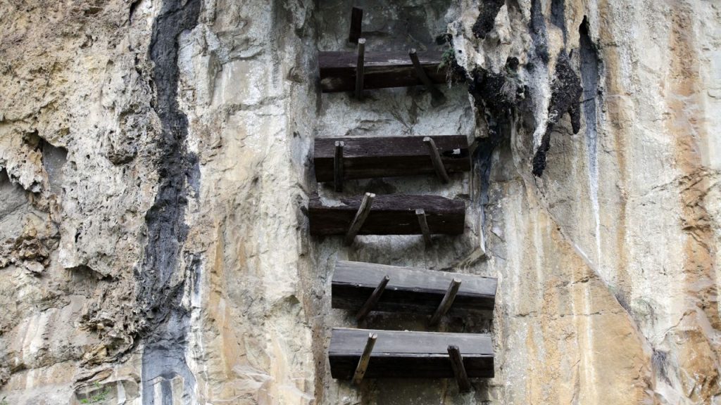 Ancient societies in southern China pegged coffins into high cliffsides in burial ritual linked to good fortune