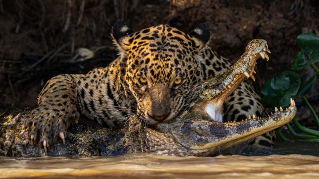 A jaguar subdues a caiman in the Pantanal wetlands, South America (Image credit: Ian Ford / Sony World Photography Awards)