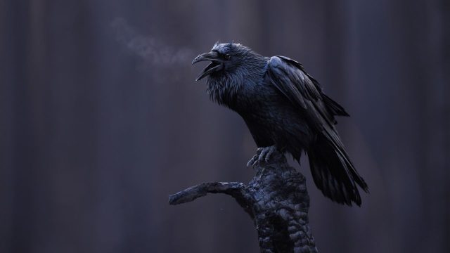 A raven calls out from a charred tree in Jasper National Park, Canada (Image credit: Maxime Legare-Vezina / Bird Photographer of the Year)