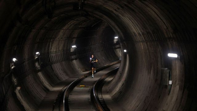 A participant runs through a tunnel during a race to commemorate the 100th anniversary of the Barcelona metro, in Barcelona, Spain (Image credit: Albert Gea / Reuters)