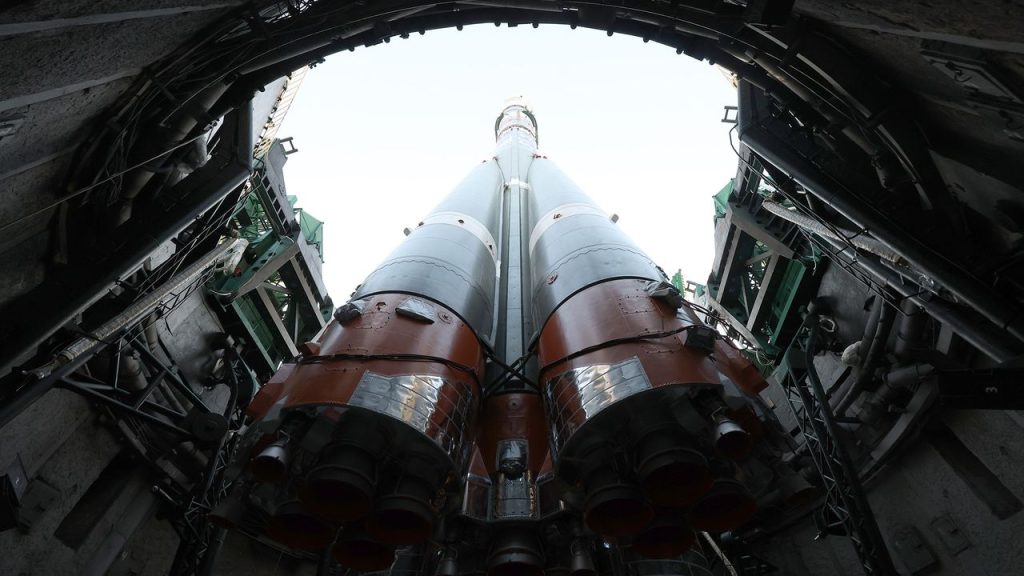 The Soyuz MS-28 spacecraft is seen on the launch pad at the Baikonur Cosmodrome, in Baikonur, Kazakhstan (Image credit: Maxim Shipenkov / EPA / Shutterstock)