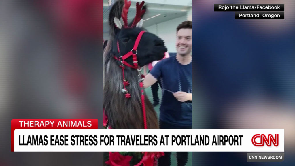 Traveling for the holidays gets a lot less stressful when llamas show up at the Portland International Airport in Oregon.Traveling for the holidays gets a lot less stressful when llamas show up at the Portland International Airport in Oregon.