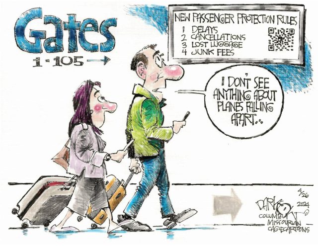 Sunday’s cartoons – airline safety, teleprompter gaffs, and more