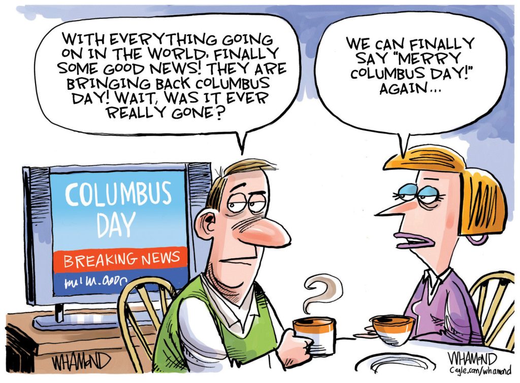 Tuesday’s cartoons – Columbus Day, David Hogg, and more