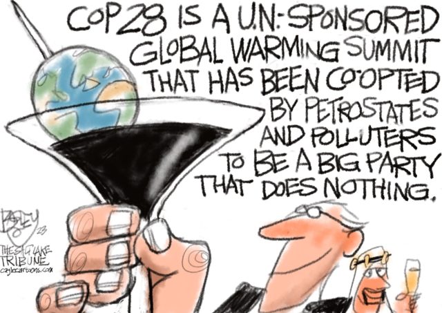 Wednesday’s cartoons – COP28 takes heat, Liz Cheney takes aim, and more