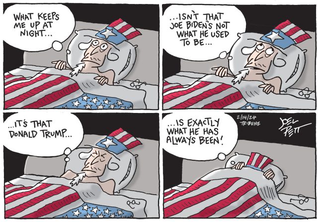 Home UK News Today’s political cartoons – February 17, 2024 UK News Today’s political cartoons – February 17, 2024 February 17, 2024 339 (Image credit: Joel Pett / Copyright 2024 Tribune Content Agency) (Image credit: Michael Ramirez / Copyright 2024 Creators Syndicate) (Image credit: Steve Breen / Copyright 2024 Creators Syndicate) Saturday’s cartoons – up late with Uncle Sam, out to sea with NATO, and more