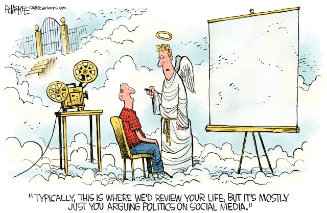 Wednesday’s cartoons – heavenly retrospectives, hellish temperatures, and more