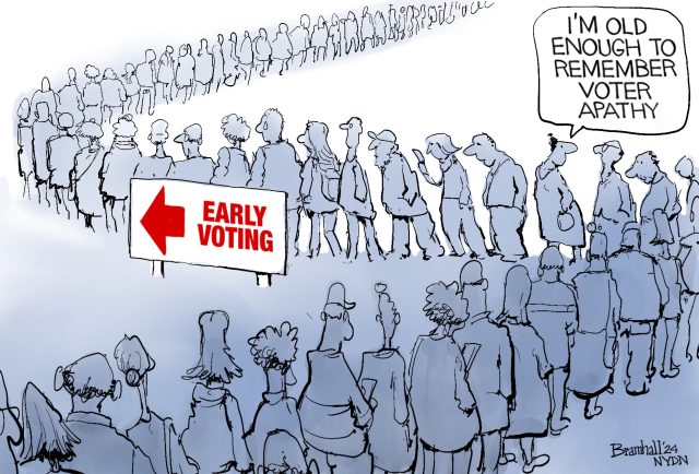 Monday’s cartoons – early voting, a perfect candidate, and more