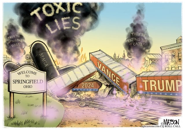 Home UK News Today’s political cartoons – September 21, 2024 UK News Today’s political cartoons – September 21, 2024 September 21, 2024 225 (Image credit: R.J. Matson / Copyright 2024 Cagle Cartoons, Inc.) (Image credit: John Cole / Copyright 2024 Cagle Cartoons, Inc.) (Image credit: Joel Pett / Copyright 2024 Tribune Content Agency) Saturday’s cartoons – derailed in Springfield, struggling in Tennessee, and more