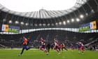 Continue reading…Clockwatch news updates from the 3pm GMT kick-offsLeicester v Man City | Live scoreboard | And email SimonElsewhere, players are coming out ahead of the 3pm kick-offs. A feast of football awaits.A goal at, and indeed for, Manchester City! Jamie Vardy just missed a chance after latching on to Gvardiol’s back-header, but now Savinho runs tonto the rebound after Foden’s shot is saved and lashes it into the back of the net! Continue reading…