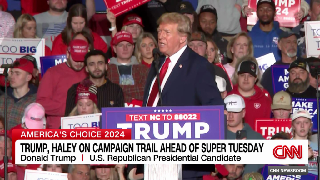 The Super Tuesday primaries are getting close, and Republican frontrunner Donald Trump is hitting the campaign trail, lashing out at President Joe Biden. Steve Contorno reports.The Super Tuesday primaries are getting close, and Republican frontrunner Donald Trump is hitting the campaign trail, lashing out at President Joe Biden. Steve Contorno reports.
