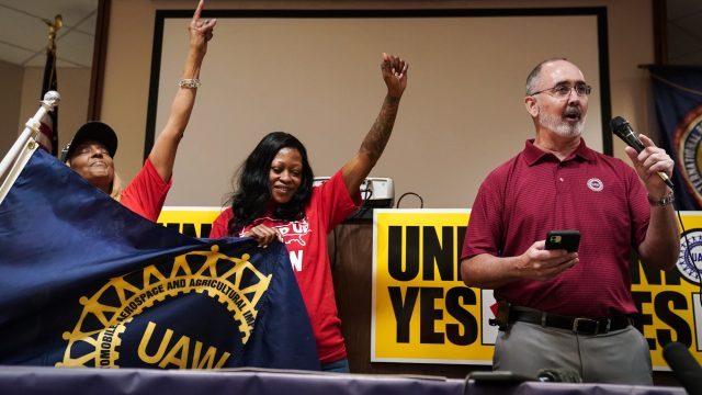 Trump campaign adviser Brian Hughes called the UAW lawsuit, filed with the National Labor Relations Board, a “shameless political stunt” to erode Trump’s support among blue-collar workers on behalf of “Democrat special interest bosses.” The UAW is one of several major labor unions that have endorsed Kamala Harris. The Teamsters, whose president Sean O’Brien spoke at the Republican National Convention, have yet to endorse a presidential candidate. “Firing workers for organizing, striking and exercising their rights as Americans is economic terrorism,” said O’Brien to Politico, in response to Trump’s comment to Musk.