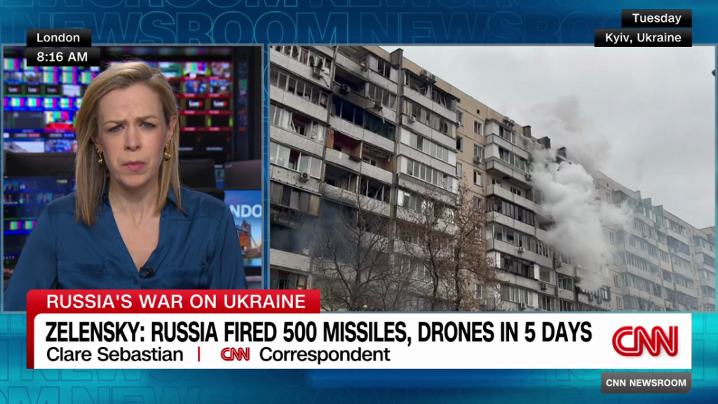 President Volodymyr Zelensky says Russia launched at least 500 missiles and drones into Ukraine over the past five days. CNN’s Clare Sebastian has the latest.President Volodymyr Zelensky says Russia launched at least 500 missiles and drones into Ukraine over the past five days. CNN’s Clare Sebastian has the latest.