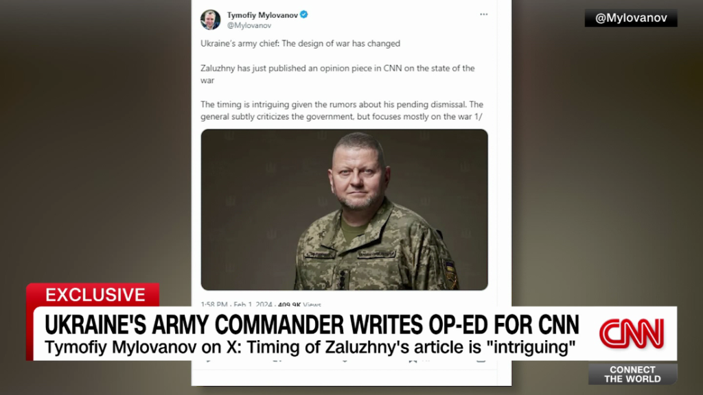 Ukraine’s top army commander Valerii Zaluzhnyi is calling for a wholesale redesign of battlefield operations in an exclusive op-ed for CNN. Tymofiy Mylovanov, President, Kyiv School of Economics, speaks to CNN about Zaluzhnyi.Ukraine’s top army commander Valerii Zaluzhnyi is calling for a wholesale redesign of battlefield operations in an exclusive op-ed for CNN. Tymofiy Mylovanov, President, Kyiv School of Economics, speaks to CNN about Zaluzhnyi.
