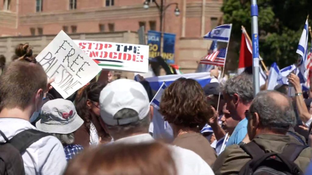 ‘Very high passions on both sides’: See protest and counter-protest at UCLA