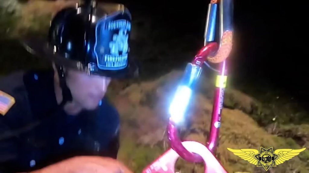 Watch a helicopter team rescue man who fell 60 feet down cliff