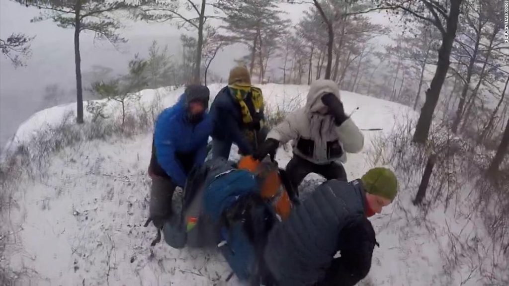 Kentucky law enforcement officials rescued four students after they went camping on a snowy gorge and got trapped in a winter storm.Kentucky law enforcement officials rescued four students after they went camping on a snowy gorge and got trapped in a winter storm.