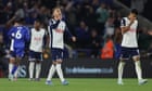 Continue reading…Spurs held to 1-1 draw at Leicester despite dominanceRodrigo Bentancur ‘fine to communicate’ after head clashAnge Postecoglou warned Tottenham must discover a clinical edge in front of goal if his side are to bridge the gap to the best teams in the Premier League this season. Spurs had to settle for a frustrating 1-1 draw at Leicester despite dominating the game, with the 37-year-old Jamie Vardy equalising with the hosts’ first shot on target and only their second of the match.Dominic Solanke, who made his Spurs debut following a £65m move from Bournemouth, was among those who squandered chances to double Tottenham’s lead after Pedro Porro opened the scoring with a header. “It was an issue we had last year as well, we need to keep working hard and be a bit more ruthless in front of goal,” Postecoglou said. Continue reading…