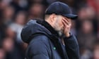 Continue reading…Manager says draw in game they dominated was ‘our fault’Klopp expects ‘more twists’ in Premier League title raceJürgen Klopp lamented Liverpool’s draw at Manchester United in a game they “should have won” and declared he was ready to support his club’s fiercest rivals against ­Arsenal after surrendering the initiative in the ­Premier League title race.The 2-2 draw at Old Trafford, where Arsenal go on the penultimate ­weekend of the season, left Liverpool second, behind Mikel Arteta’s team on goal difference. Klopp said in a swipe at United’s performance and his players’ mistakes that Arsenal would win at Old Trafford if the hosts played as poorly again. Continue reading…
