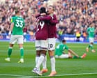 A Tomas Soucek ram-raid in second-half added time put the seal on a victory that was earned with a determined first-half display, with Nuno Espírito Santo’s face a barometer for his team’s fortunes. From gritting his teeth furiously after a fourth-minute concession, the West Ham manager was smiling by half-time, and roaring as the final whistle blew. Likewise, a crowd that struggled even to be frustrated early on found its voice.