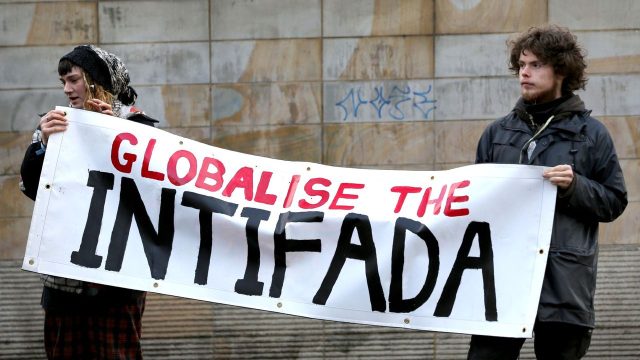 “Globalise the intifada” is a slogan that has been used to advocate for international support of Palestinian resistance against Israeli military occupation of Palestinian territories.