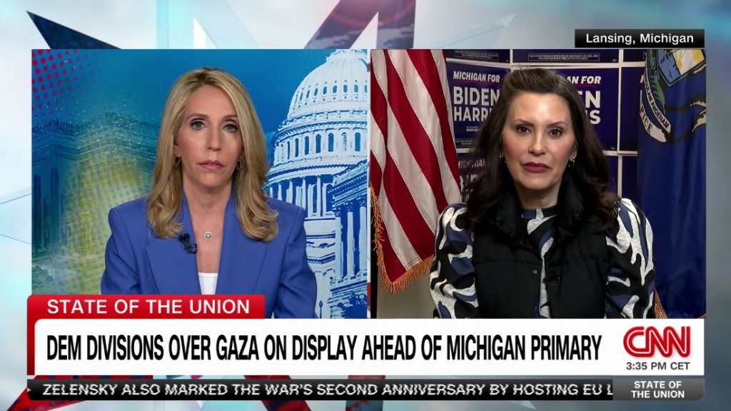 Michigan Gov. Gretchen Whitmer tells CNN’s Dana Bash “I understand the pain that people are feeling” over the war in Gaza but warns that “any vote that’s not cast for Joe Biden supports a second Trump term.”Michigan Gov. Gretchen Whitmer tells CNN’s Dana Bash “I understand the pain that people are feeling” over the war in Gaza but warns that “any vote that’s not cast for Joe Biden supports a second Trump term.”