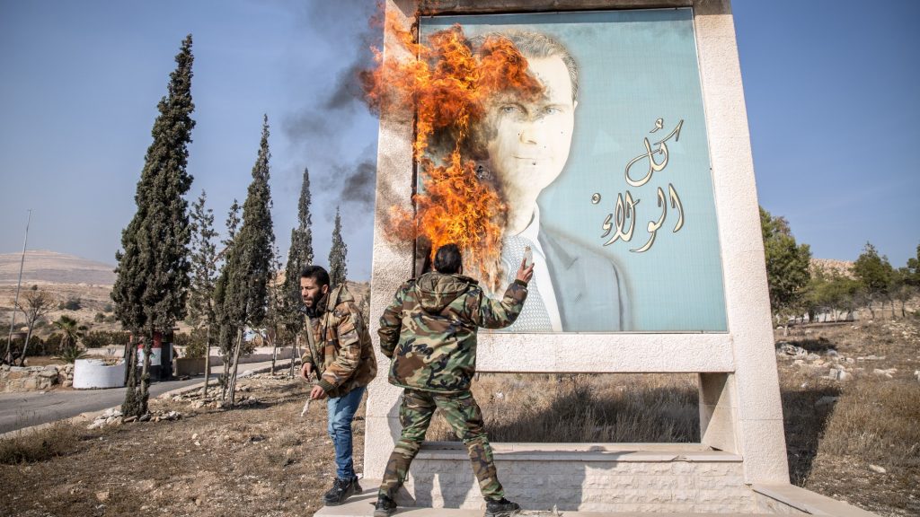 The regime had pledged to defend the capital, Damascus, with a “ring of steel”; but in the event, the rebels’ rapid southward advance met little resistance. Regime soldiers abandoned their posts, leaving uniforms and equipment strewn in the street, as Assad and his family fled the country.