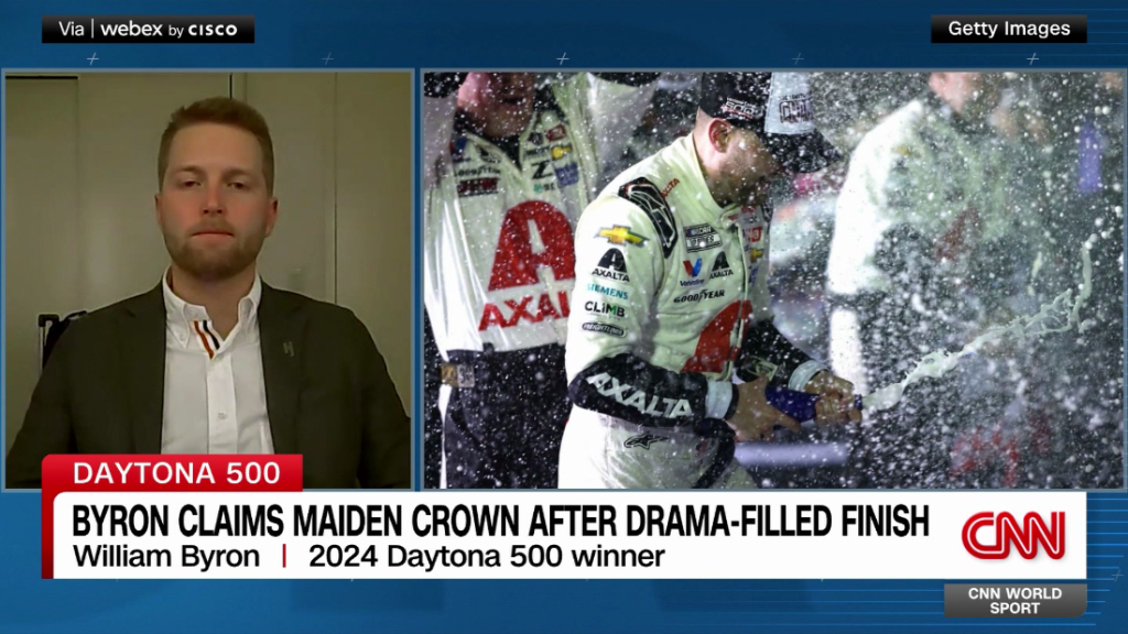 After a day delay due to rain, William Byron kickstarted Hendrick Motorsports’ 40th anniversary season with a victory at the famed Daytona 500 at Daytona International Speedway on Monday. Byron joined World Sport’s Amanda Davies for more.After a day delay due to rain, William Byron kickstarted Hendrick Motorsports’ 40th anniversary season with a victory at the famed Daytona 500 at Daytona International Speedway on Monday. Byron joined World Sport’s Amanda Davies for more.