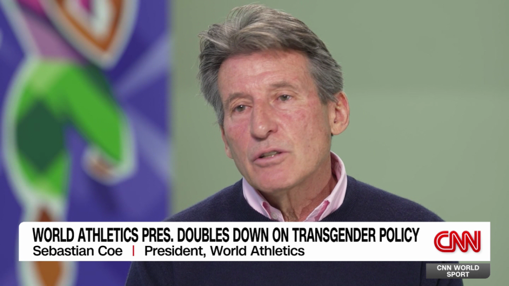 Just under a year ago World Athletics announced it would prohibit athletes who have gone through what it called “male puberty” from participating in female world rankings competitions. The governing body for track and field said the exclusion would apply to transgender women. The decision was criticized by trans rights advocates who warned that “blanket bans” on transgender women from competing in women’s categories risked “violating fundamental human rights principles.” Speaking with CNN’s Amanda Davies at the World Athletics Indoor Championships in Glasgow, Scotland, the governing body’s President Sebastian Coe doubled down on the decision made by his Council, saying, without evidence, that had World Athletics not acted on the matter no woman would ever win another sporting event.Just under a year ago World Athletics announced it would prohibit athletes who have gone through what it called “male puberty” from participating in female world rankings competitions. The governing body for track and field said the exclusion would apply to transgender women. The decision was criticized by trans rights advocates who warned that “blanket bans” on transgender women from competing in women’s categories risked “violating fundamental human rights principles.” Speaking with CNN’s Amanda Davies at the World Athletics Indoor Championships in Glasgow, Scotland, the governing body’s President Sebastian Coe doubled down on the decision made by his Council, saying, without evidence, that had World Athletics not acted on the matter no woman would ever win another sporting event.